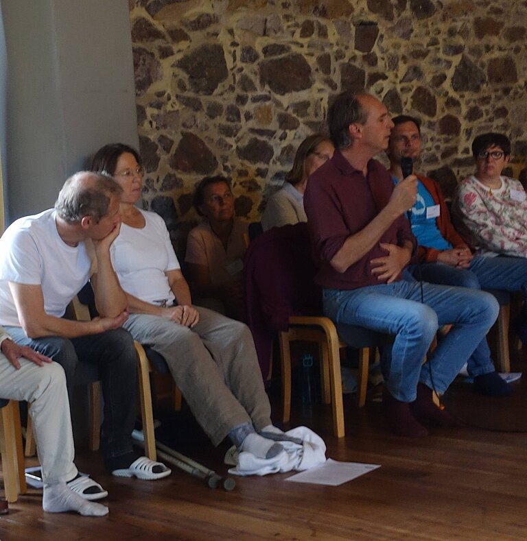 - Mir hat besonders der Austausch miteinander Freude gemacht – Austausch auf Augenhöhe - sehr schönes Miteinander, harmonisch und abwechslungsreich – besonders war die Offenheit und Zugewandtheit der Teilnehmer, die Offenheit und Stimmung, der Gruppenraum war wunderbar